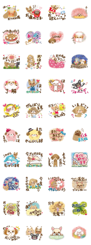 毎日つかえる便利な日常スタンプです。大きめの文字で、沢山のわんちゃんが登場です♡