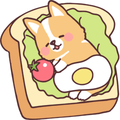 「まるまるコーギー」の第4弾!まるまるしたコーギーとパンの組み合わせがたくさん入ったスタンプです!食パンクッションやコッペパン 、ハンバーガーなコーギーも☆