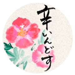京女・舞妓さんが具合が悪いときに使いそうな言葉や、はんなりほっこりする京都弁。筆文字と花の水彩画イラストを組み合わせました。