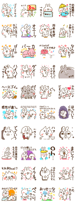 ゆうき/ちゃん/さん/くん/使う/名前/あだ名/名字/スタンプ続編/ユウキ/勇気/結城/結希/柚生/優木/優希/遊記/有希/祐希/佑樹/有紀/裕貴/勇樹/裕樹/悠希/専用22/山田まぽん作山田まぽん/名前スタンプ より発売