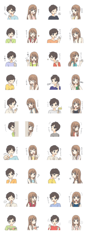 2人で一緒に使えるペアのスタンプです。日常のやりとりのお供にどうぞ!普段使いしやすい基本的な内容多め。恋人・夫婦間、または友人間でも使えると思います。よいこ より発売