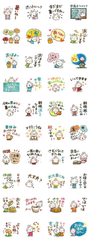 夏~秋「白うさぎさん」日常パック スタンプ画像一覧