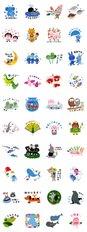 愉快でかわいい動物たちのスタンプです。日常で使う言葉を多めに作ってみました。黒宮 望美 より発売