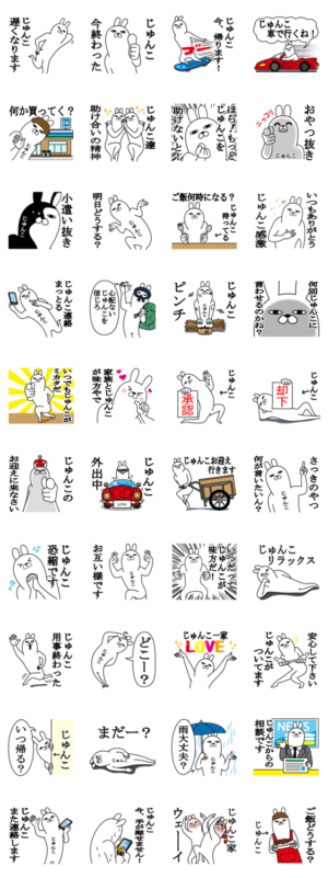じゅんこの家族の業務連絡編。順子、潤子、淳子、純子、詢子、絢子、隼子、じゅん子など全国のジュンコが付く人専用のスタンプです