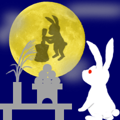 まんまる満月、十五夜お月様にウサギが・・・。日常でよく使う言葉と、思いやりや気遣いの言葉が大きめの文字で入っています。
