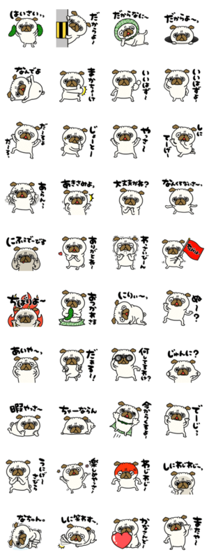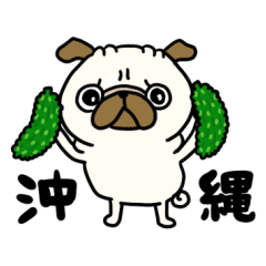 沖縄県の方言を話すパグさんの日常で毎日使えるスタンプです。沖縄の方、沖縄好きな方、パグちゃん好きの方、犬好きの方へ♪ぴよたぬき より発売