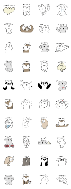 めっちゃゆるい動物達が わりと実用的な言葉をしゃべってるスタンプです。LILY. より発売