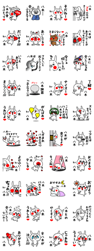 全国の「八木ちゃん」専用のかわいいウサギの恋愛スタンプ。恋人や大好きな友達、家族に使える!!(愛の告白にも)