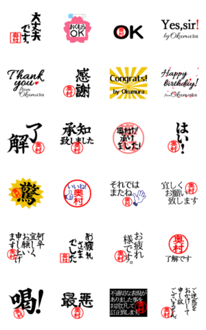 時には真面目に時には力強く、時にはオシャレに時にはかわいく。はんこメインのデカ文字、奥村(おくむら)さんスタンプです。