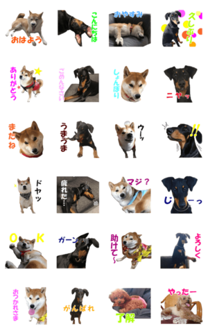 ドーベルマンと柴犬、トイプードルのスタンプですライラック より発売