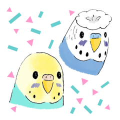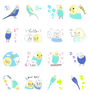 ちょい羽衣セキセイのキリちゃんとパステルカラーレインボーセキセイのラムネはんの楽しいスタンプです。sekisei works より発売