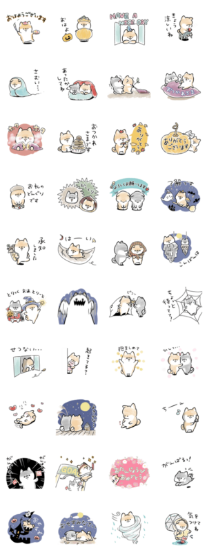 ハロウィンなどイベントにも使える秋の柴犬スタンプですmimori より発売