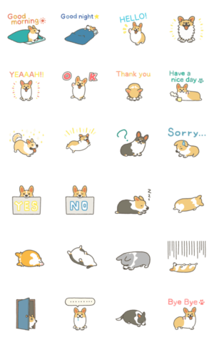 日常会話で使えるコーギーのアニメーションスタンプ、英語版です。犬好き・コーギー好きの方、日々の会話に動くコギの成分が欲しくなったらお使い下さい。