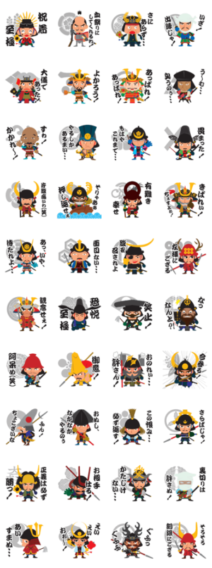日本の戦国武将のスタンプ! 武士言葉で楽しくスタンプライフ!デザインオフィスワプラス より発売