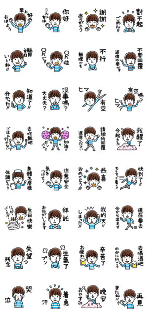 日本語と台湾語で挨拶する男性 スタンプ画像一覧