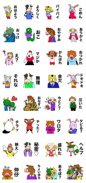 ちょっと見た目がおバカそうな干支の動物たちがスタンプになりました。どこか可愛らしい彼らをたくさん使って、お気に入りの1匹を見つけよう。