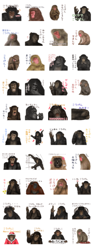 こうげん コウゲン Kougen 高原 荒原 興源 黄元等へ送る表情豊かなリアルな猿,ゴリラ,チンパンジー達のなまえスタンプ