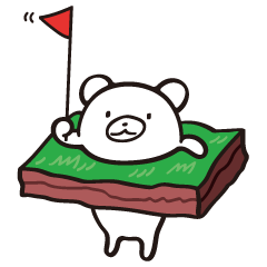 ゴルフ場で遊んでいたら球と間違えて打たれそのままホールインワンしてしまったクマ。ゴルフ初心者&教える人応援プロジェクト「ゴルフのたすき」のキャラクターです。