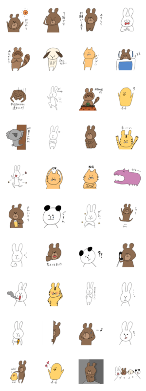 ゆるくて素朴な動物たちのスタンプのダウンロードはこちら↓