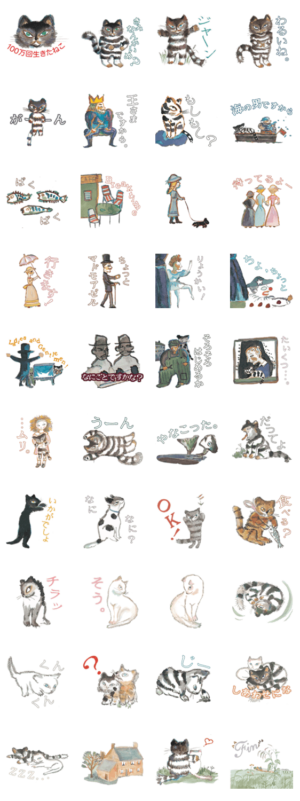 ロングセラー絵本『100万回生きたねこ』がスタンプになって登場! とらねこと白いねこはもちろんサブキャラたちもいっぱい。 絵本の世界をLINEでも。オフィス・ジロチョー より発売