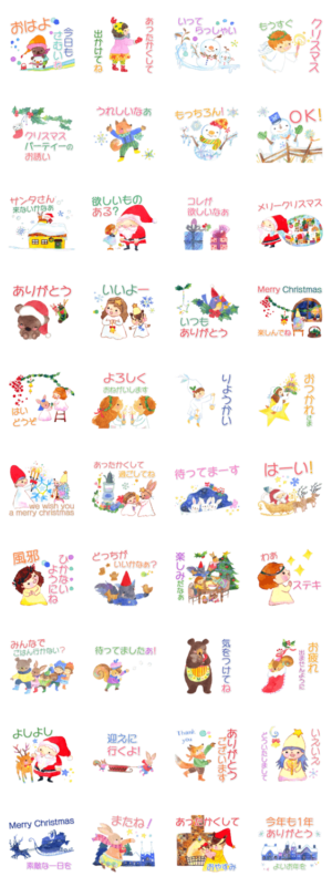 絵本のような毎日というクリスマススタンプです。とてもほっこり気持ちが温まるような優しいスタンプです☆