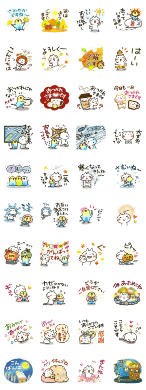 台風対策している風景が健気でほっこリ、意外な動作の絵も多数ありとても楽しいスタンプです。