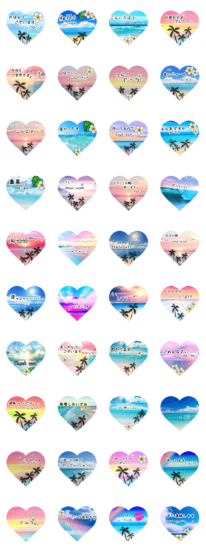 南国ハワイ風景とかわいい顔文字たち スタンプ画像一覧