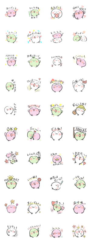 ポジティブで平和な三色団子たちのスタンプです。ご機嫌な時、励ますときなど、ご家族やお友達や恋人とどうぞ。花咲 ちい より発売