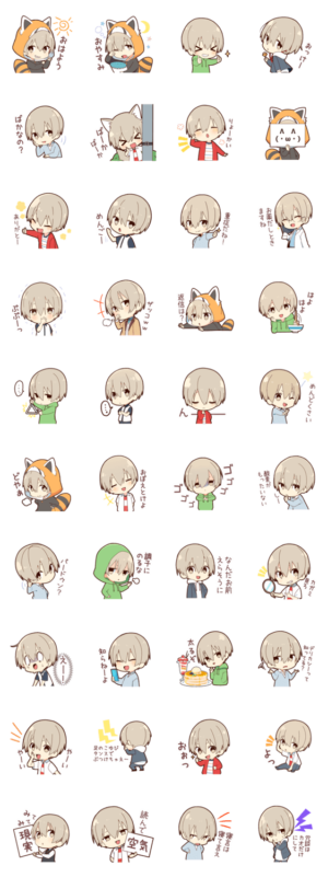 可愛かったら許される!?愛ある毒でトークを彩る素直で正直な男の子のスタンプのミニver.が登場!毎日よく使う言葉で素早く返信できます。アライグマの着ぐるみにもご注目♪