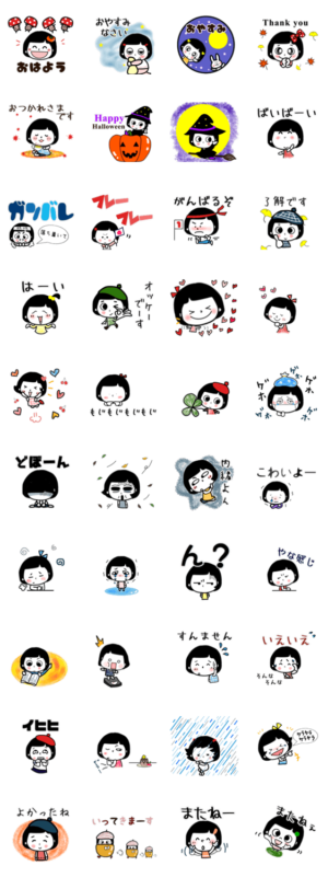 ボンジュール かわいいおめめの女の子 秋 スタンプ情報