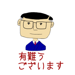 よく見るとつぶらな瞳の中高年男性。押したくなるスタンプです☆