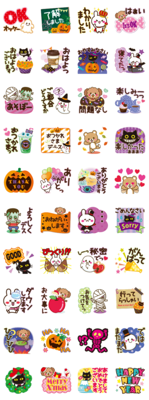 ハロウィーンだけでなく、クリスマス用のスタンプも混じってお得感あります。