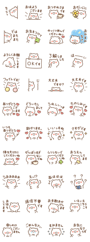 くまの、思いやりのある気づかい言葉や敬語をセットにしたスタンプです。con より発売