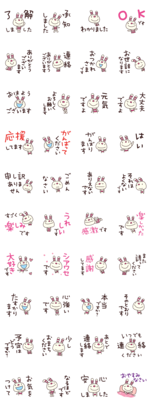 ピンクのヨコシマうさぎがかわいい、敬語のスタンプです。日常で使えます♫