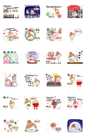 ハロウィン、クリスマス、年末年始、節分、恵方巻、バレンタイン、ホワイトデーに使える冬のイベントメッセージです!けいこさんにかわってマフィが可愛くお届けします♪Faa Industry より発売