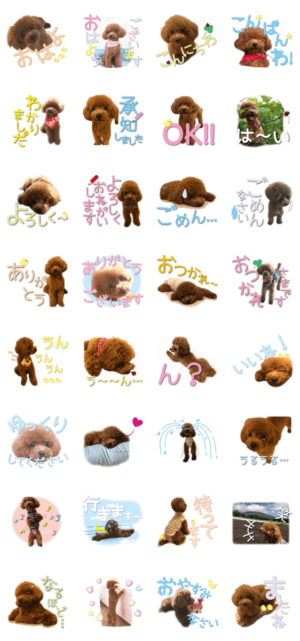 トイプードル写真スタンプ第7弾。Ⅼサイズ文字。丁寧な敬語とカジュアルな言葉で幅広くお使い頂けます。毎日使える挨拶、感情を揃えました。