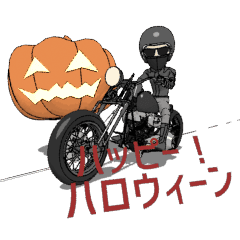 アメリカンオートバイを愛するライダーのためのスタンプ。アニメーションバージョン3。ハロウィン、クリスマス、新年。