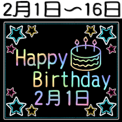 【まつこの◯月お祝い】2月1日~16日の日付入りスタンプ光る!動くレインボーネオンでお誕生日を祝おう ケーキも光るよ 2月生まれに送る 贈る/ハッピーバースデーMatsuko2016.11 より発売