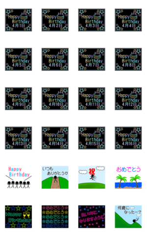4月1日~16日の レインボーお誕生日 スタンプ画像一覧