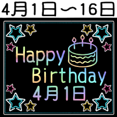 【まつこの◯月お祝い】4月1日~16日の日付入りスタンプ光る!動くレインボーネオンでお誕生日を祝おう ケーキも光るよ 4月生まれに送る 贈る/ハッピーバースデー