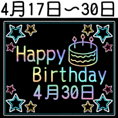 【まつこの◯月お祝い】 4月17日~30日の日付入りスタンプ光る!動くレインボーネオンでお誕生日を祝おう ケーキも光るよ 4月生まれに送る 贈る/ハッピーバースデーMatsuko2016.11 より発売