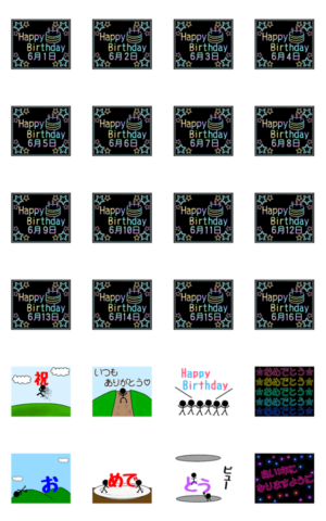 6月1日~16日の レインボーお誕生日 スタンプ画像一覧