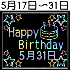 【まつこの◯月お祝い】5月17日~31日の日付入りスタンプ光る!動くレインボーネオンでお誕生日を祝おう ケーキも光るよ 5月生まれに送る 贈る/ハッピーバースデーMatsuko2016.11 より発売