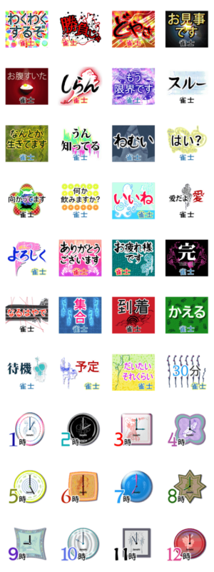 雀士シュールフルスロットル文字時計入り スタンプ画像一覧