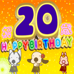 1歳〜24歳までの誕生日を迎えた方へ送るスタンプです。 各年齢ごとに違うデザインでかわいいわんことぶたさんが添えてあります。 でか文字ネオンが光って盛大に祝えます。