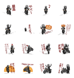 バイクの優美なボディラインがたまりません。乗るだけで楽しいと思うライダー。私のバイクライフスタンプです。ハロウィン、クリスマス、新年。bon より発売
