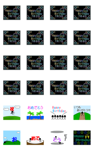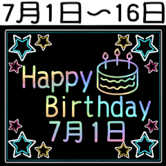 【まつこの◯月お祝い】7月1日~16日の日付入りスタンプ光る!動くレインボーネオンでお誕生日を祝おう ケーキも光るよ 7月生まれに送る 贈る/ハッピーバースデーMatsuko2016.11 より発売