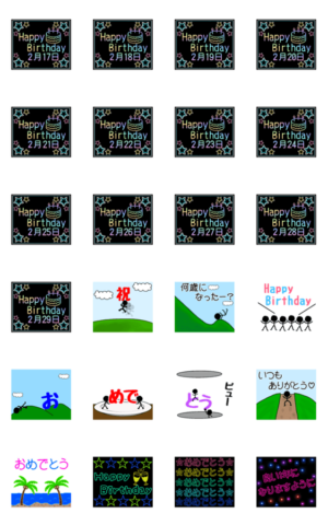 2月17日~29日の レインボーお誕生日 スタンプ画像一覧