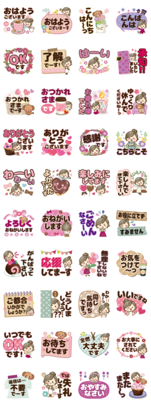 カフェ好きで優しいナチュラルな女の子。今回は丁寧言葉、ゆるめの敬語が中心です♪でか文字も見やすく便利★可愛すぎない程よいタッチの大人かわいい女子スタンプです♥紅おれんじ より発売
