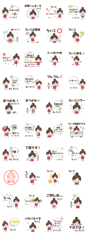 「ちいこ」専用。日常会話で使いやすい名前スタンプの基本セットです。チイコ/千衣子/智以子/知伊子/千伊子/智伊子/ちい子/敬語/大人/無難/毎日のメッセージ